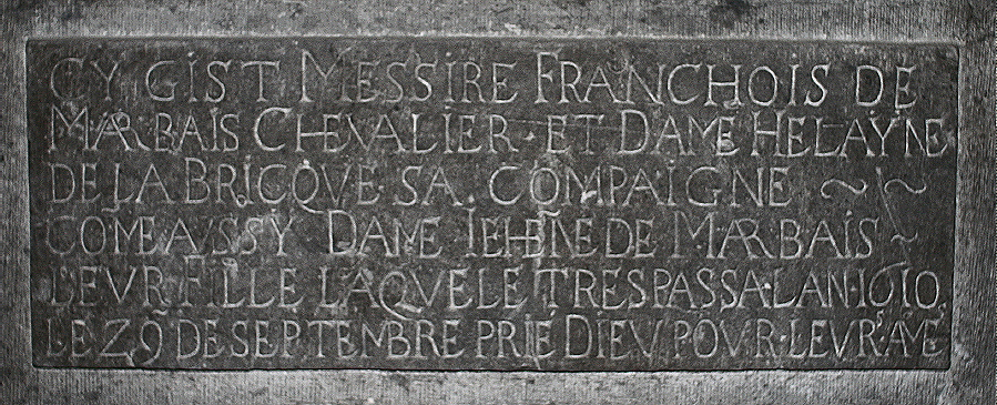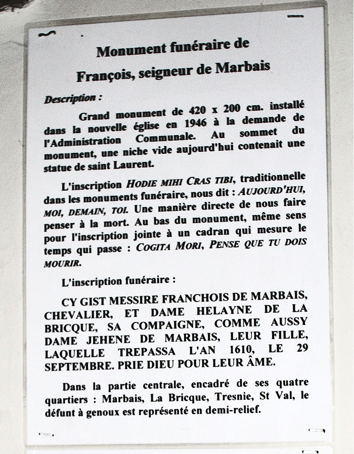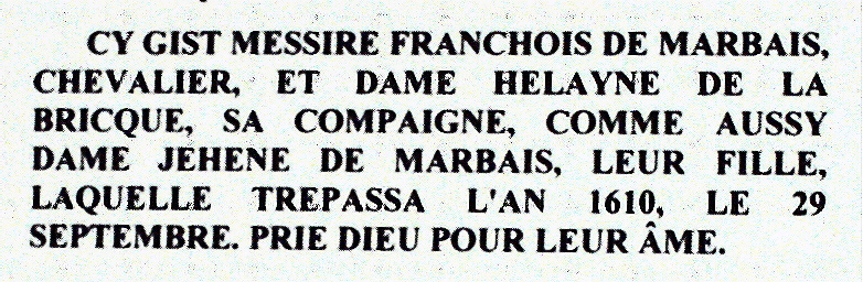 Monument funéraire de François, seigneur de Marbais et armoirie de la Famille LABRICQUE